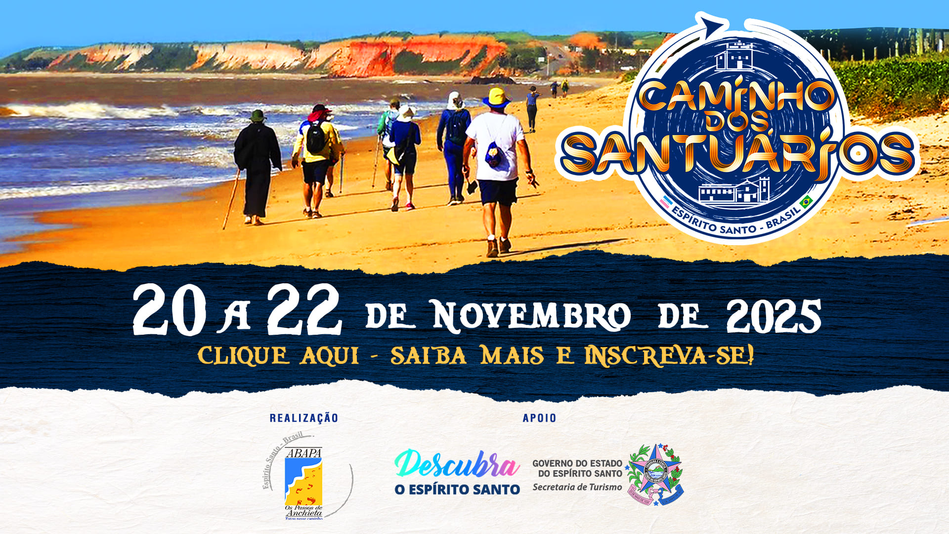 INSCREVA-SE AGORA!XXVII edição da caminhada “Os Passos de Anchieta” – Dias 04, 05, 06 e 07 de junho de 2026 CLIQUE AQUI! CAMINHO DO SANTUÁRIOVocê precisa fazer esse caminho que é a extensão dos Passos de Anchieta Conheça
